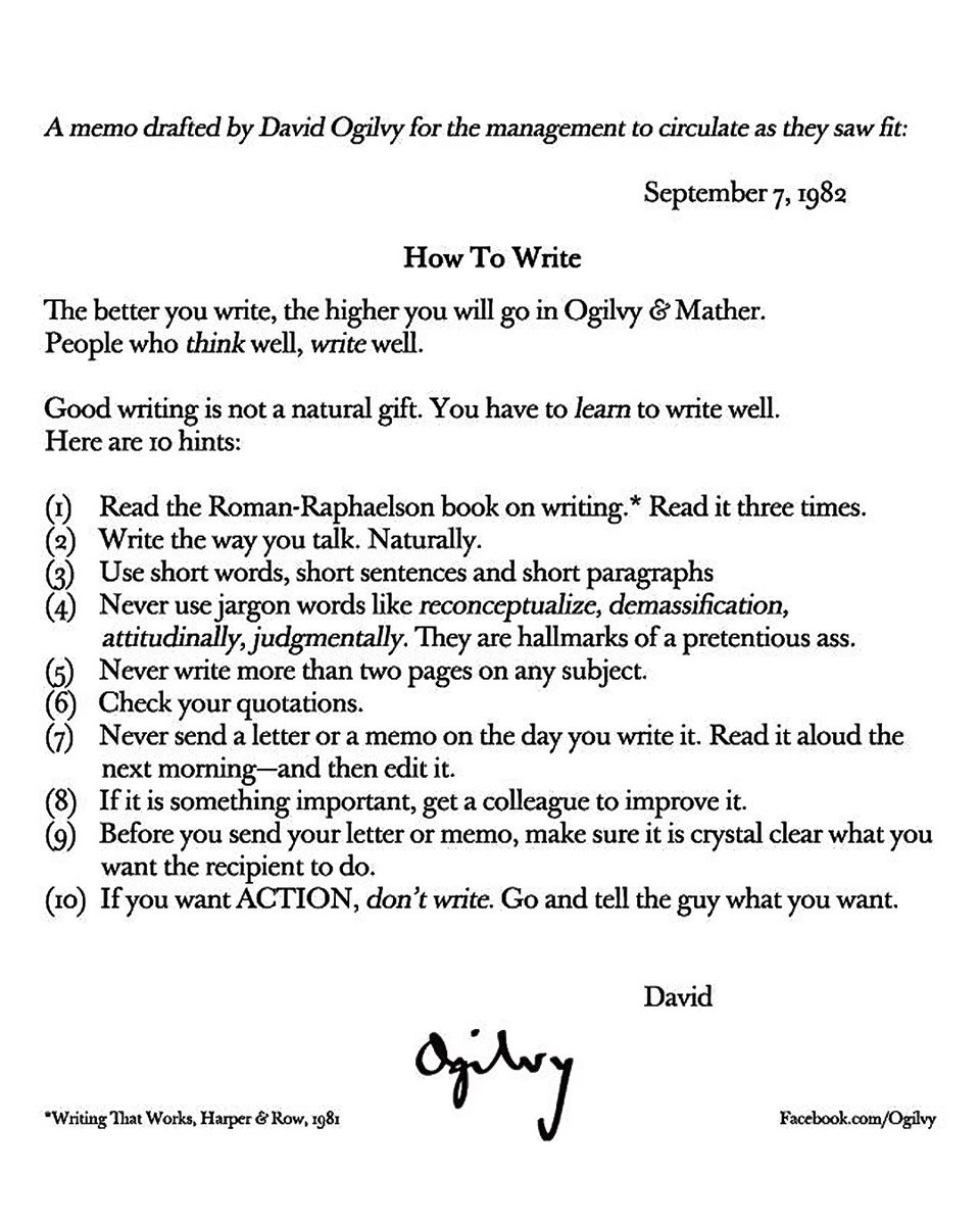 In 1982, the Father of Advertising wrote an internal memo titled “How to Write.”