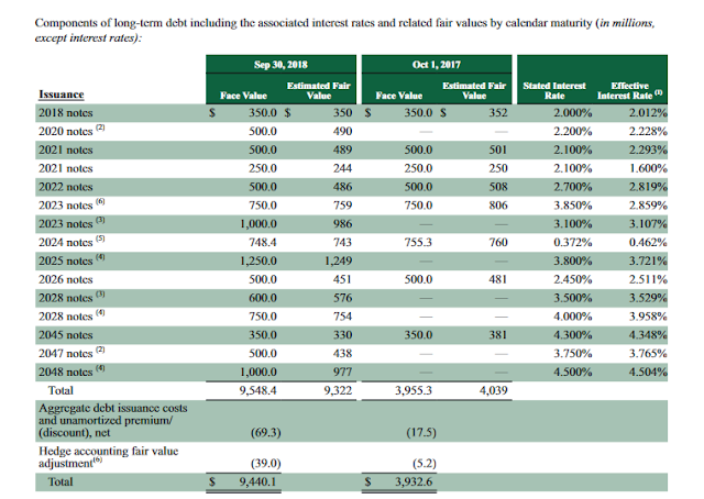 In addition to borrowing from its customers, Starbucks also borrows from professional investors. Here’s a list Starbucks’s long-term debt: