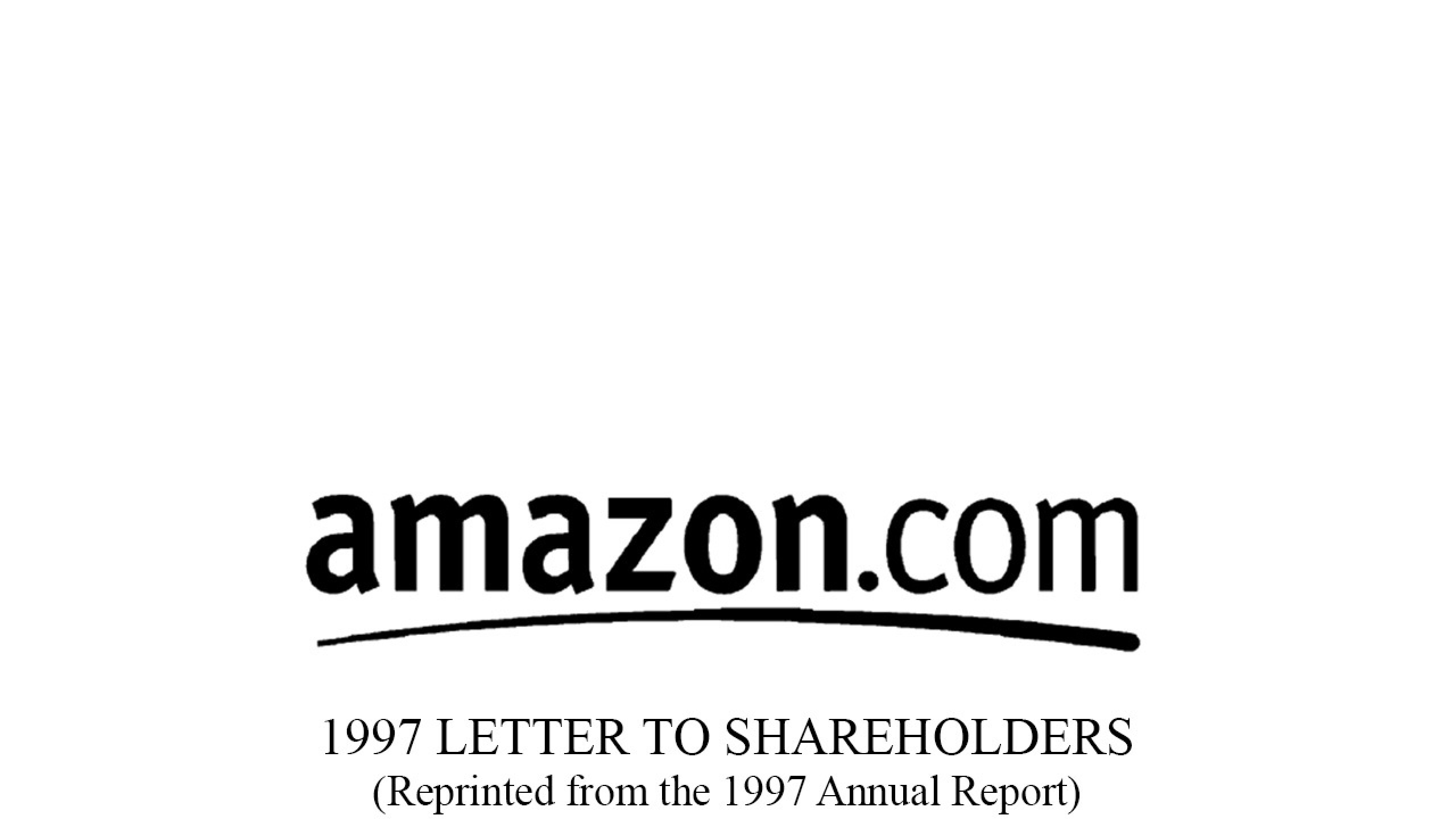 From the beginning, our focus has been on offering our customers compelling value. We realized that the Web was, and still is, the World Wide Wait. Therefore, we set out to offer customers something they simply could not get any other way, and began serving them with books. We brought them much more selection than was possible in a physical store (our store would now occupy 6 football fields), and presented it in a useful, easy- to-search, and easy-to-browse format in a store open 365 days a year, 24 hours a day. We maintained a dogged focus on improving the shopping experience, and in 1997 substantially enhanced our store. We now offer customers gift certificates, 1-Click shopping℠, and vastly more reviews, content, browsing options, and recommendation features. We dramatically lowered prices, further increasing customer value. Word of mouth remains the most powerful customer acquisition tool we have, and we are grateful for the trust our customers have placed in us. Repeat purchases and word of mouth have combined to make Amazon.com the market leader in online bookselling.