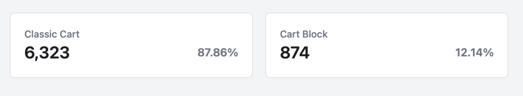 We looked at how many stores are using the new block-based cart. Out of all sites, we were able to detect a cart page on 7,197 WooCommerce stores.