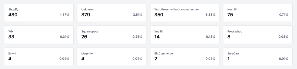 - A handful of sites moved to other larger platforms like Prestashop, Magento, or BigCommerce.