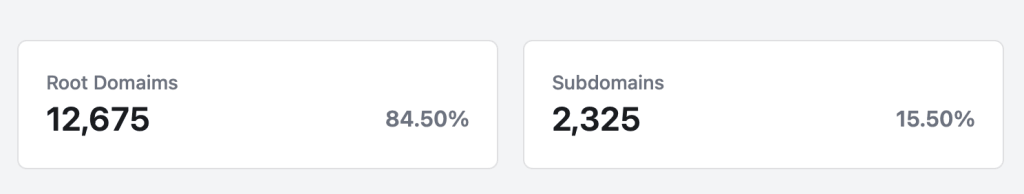 There’s a chance we missed a few testing/staging sites, but in general, more than 10,000 URLs are for a root domain, so we’re confident our base list is large enough to track meaningful changes. Many subdomains are still valid installations, such as those using language prefixes or formats like store.domain.com.